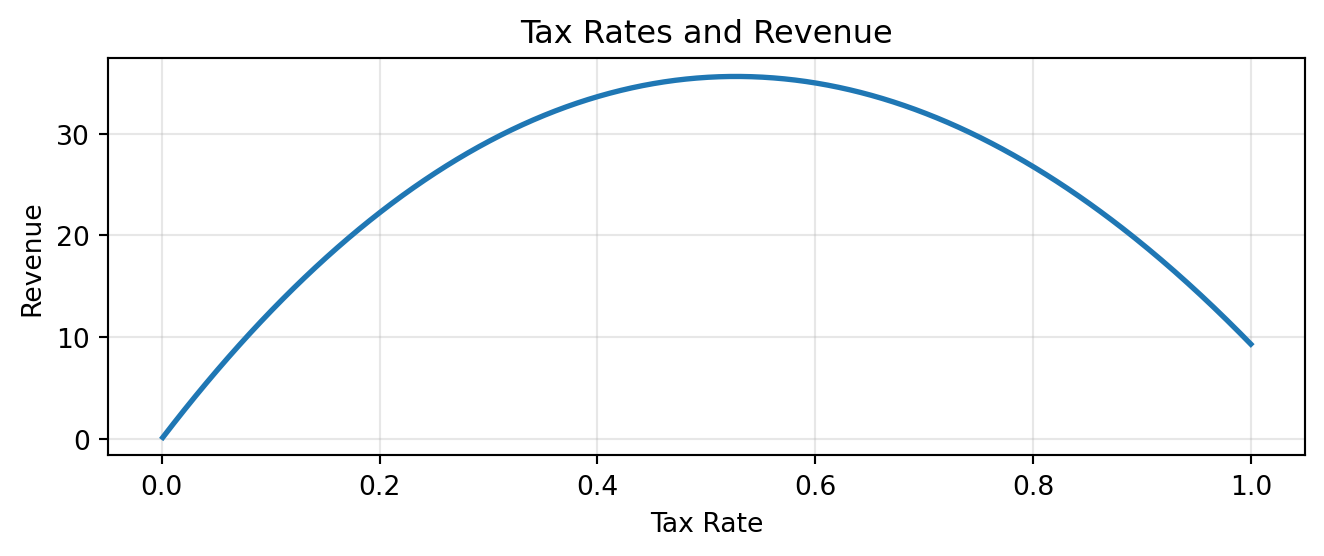 Do not worry about the exact form of the function, just know that it is a function that we want to maximize. It takes a single input, the tax rate, and returns the revenue.