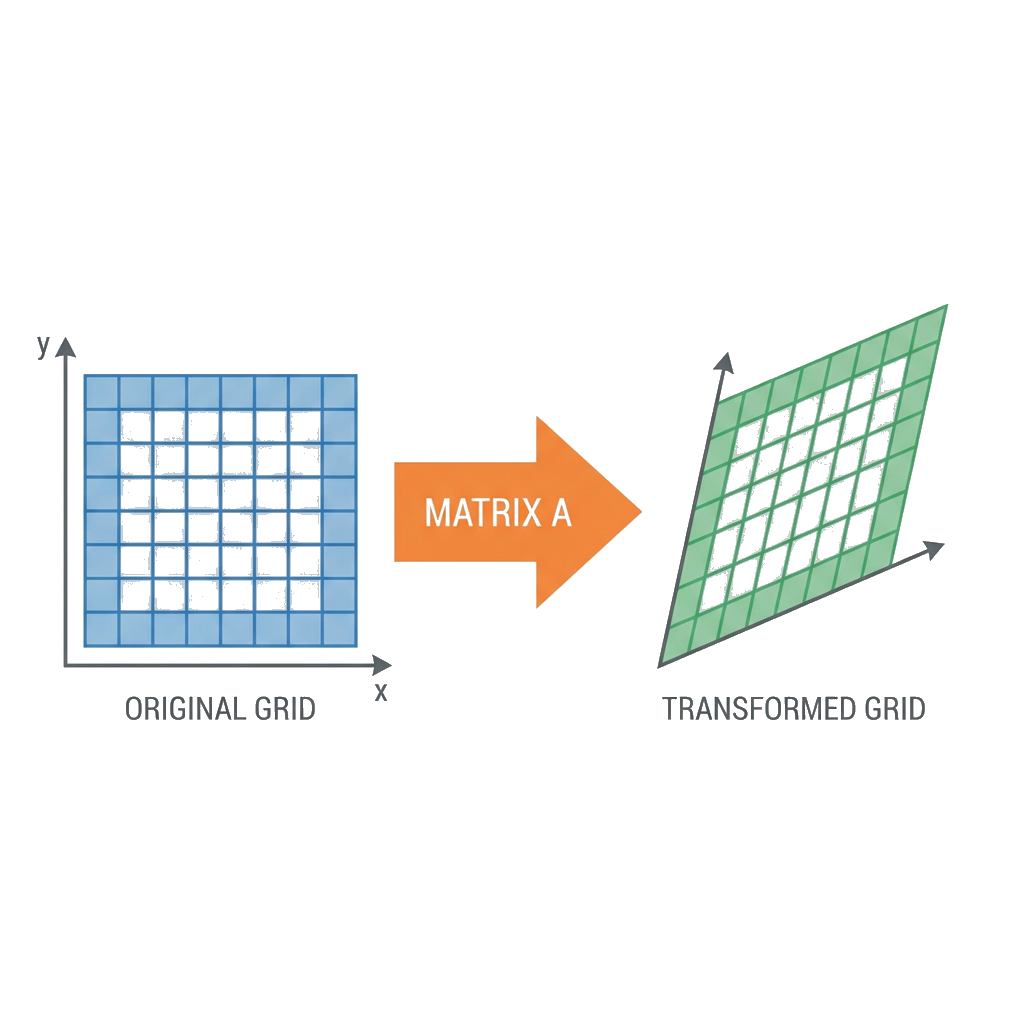 | Scaling | \(\begin{pmatrix} 2 & 0 \\ 0 & 3 \end{pmatrix}\) | Stretch | \(\begin{pmatrix} 2 & 0 \\ 0 & 3 \end{pmatrix}\begin{pmatrix} 2 \\ 2 \end{pmatrix} = \begin{pmatrix} 4 \\ 6 \end{pmatrix}\) |