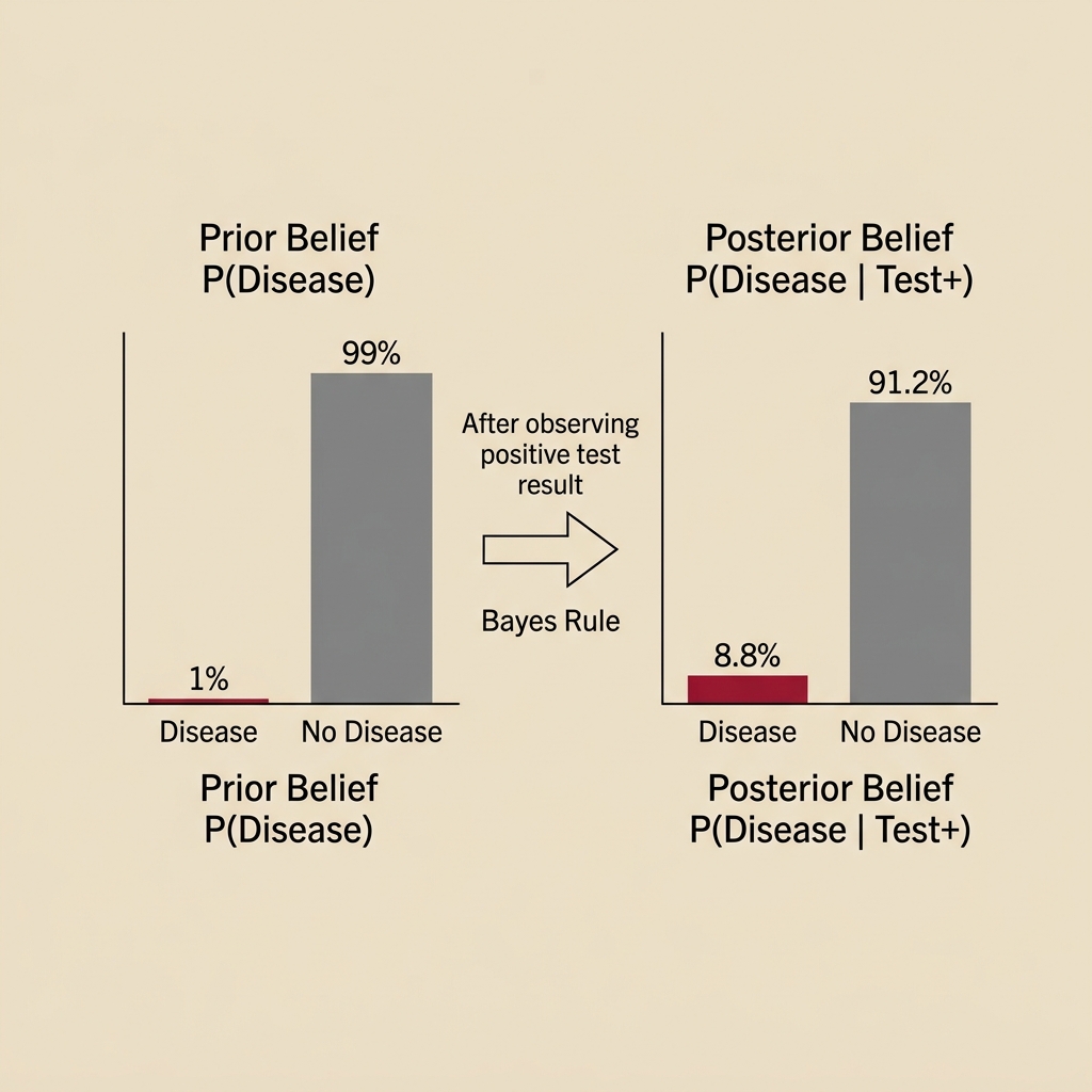 | Posterior | \(P(A \mid B)\) | Updated belief after seeing evidence |